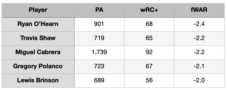O’Hearn definitely gets dinged for his defense, which is why I wanted to list the wRC+ number on the table as well. Overall, his production was 32 percent worse than league average over the last four seasons.