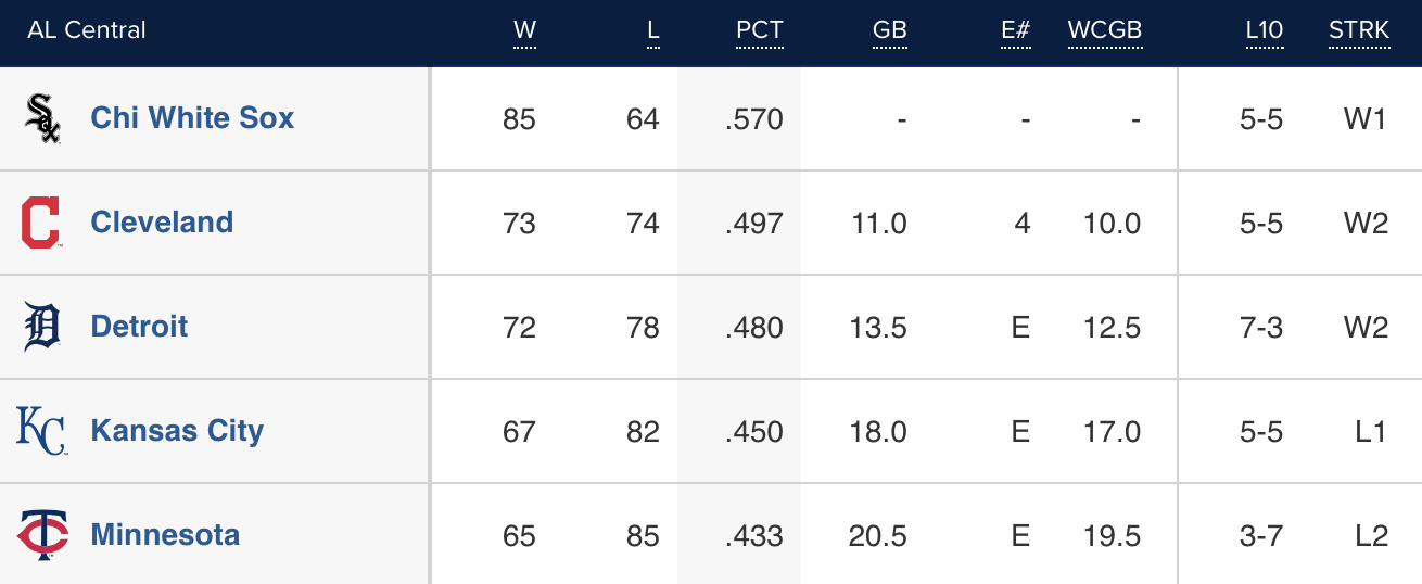 I haven’t done this segment for a few days because…what’s the point? The White Sox are going to clinch the division in the next few days and every other club is under .500 with a negative run differential. The AL Central is not known for quality baseball in 2021.