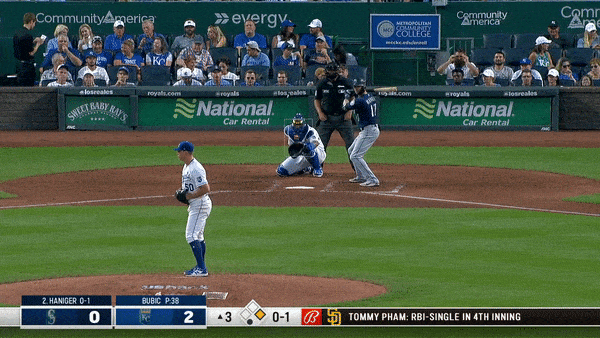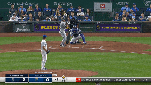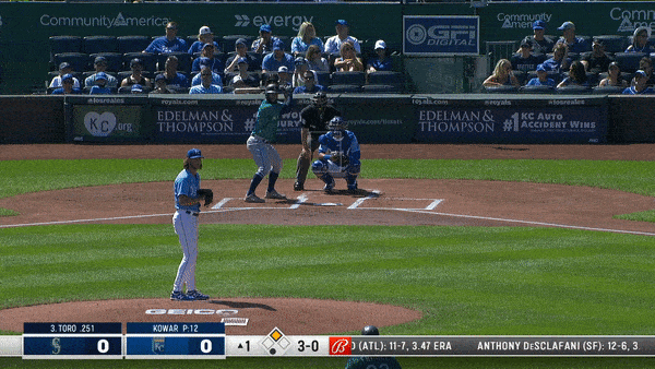 In the second inning, he started grooving them. He delivered two straight down the chute. Both were clobbered. The first on a 3-2 pitch to Kelenic (who, after his offensive display at The K this weekend, should really have his agent explore a way to make him a Royal full-time). The second on a first pitch to Jake Bauers.