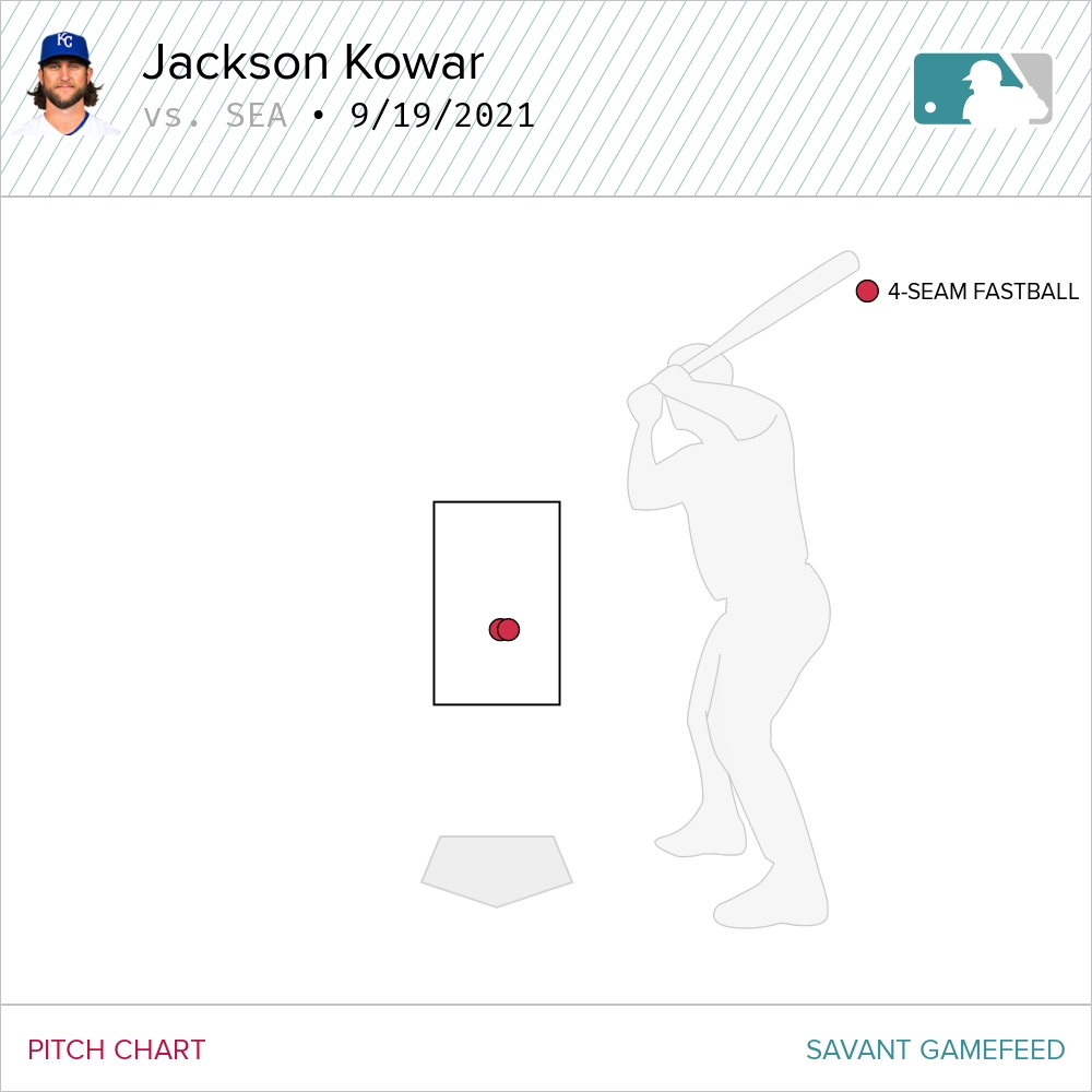 We’re late in the season and as you’ll see in the next section, the Royals are desperate for innings from their pitching staff. In an ideal situation, you’d push Kowar to the bullpen or sit him down for the next two weeks and have him work on fixing the control issues. Instead, he will probably get the another turn or two in the rotation before wrapping up what has been an extremely difficult debut season in the bigs.