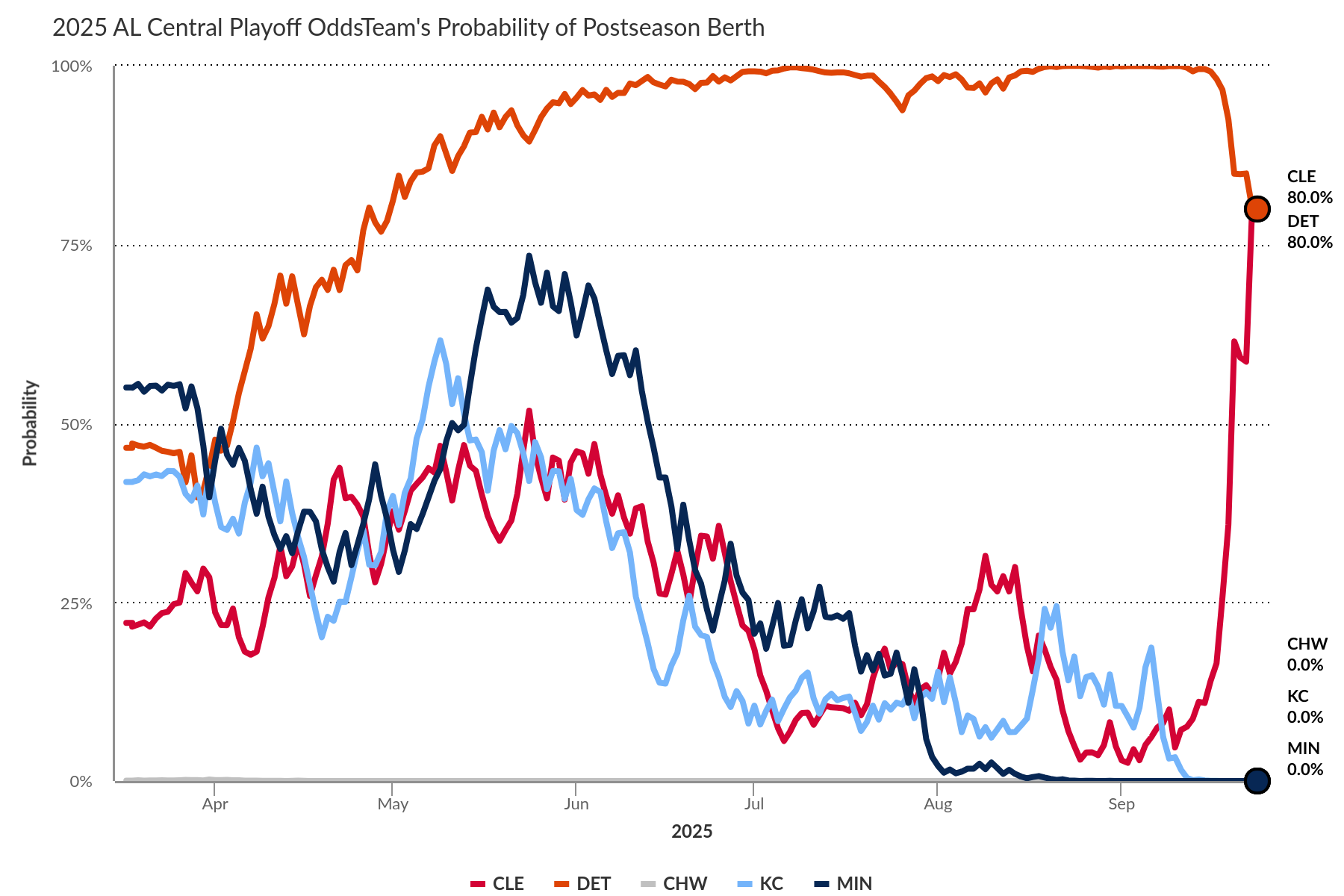 I can’t wrap up today’s edition without mentioning the bonkers race in the AL Central. The Guardians and Tigers are going head-to-head in a three-game set this week, and boy, oh boy, do the Tigers look like a team operating on vapors. On September 1, Detroit led the division by nine games over the Royals and 10.5 games over the Guardians. That lead is now completely gone as both Cleveland and Detroit have identical 85-72 records.