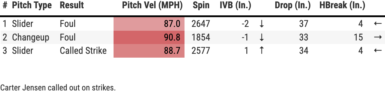 He would get a tad wild with the four-seamer from time to time, but he really raided the zone with that pitch, keeping it elevated for the most part. As you can see from the chart above, he got some chase on the changeup.
