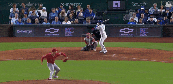 Look at how Witt pulls his hands in to get around on a 97 mph four-seamer from reliever Ryan Zeferjahn. That’s the third pitch of the at bat where the first two were sweepers in the mid-80s. I don’t know…there’s just something delightful about Witt crushing a ball delivered with that velocity in that location.