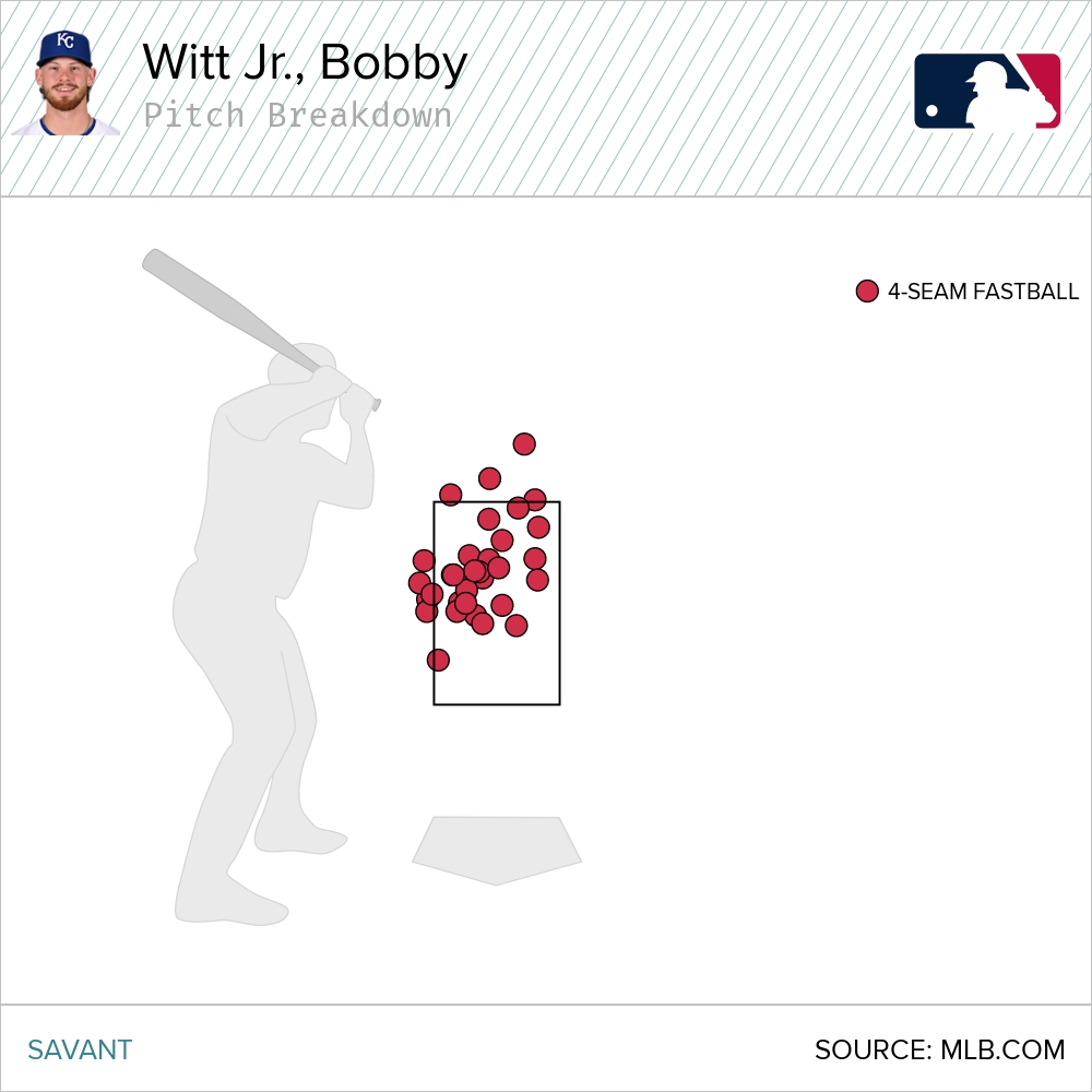 Witt has hit 34 home runs in his career now against four-seam fastballs. That was the second-furthest inside that he’s turned on and blasted out of the park.