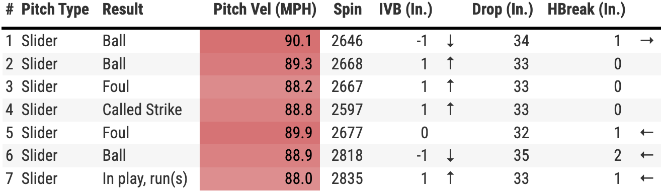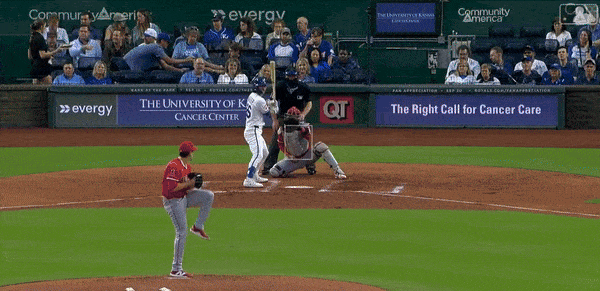 I’ve never called pitches in a ballgame in my life. But I would think that against a hitter of Perez’s caliber, even in a season where he’s put up a 100 OPS+, that I might mix in a four-seamer up in the zone. I get that the sixth slider of the at bat was up and in to Perez, setting up something low and preferably away, but if you watch that GIF again, the Angels backstop Oswald Peraza set his target in the middle of the plate. Sure, you don’t want to walk the leadoff hitter in the later innings of a one-run ballgame. But if you throw Perez seven sliders in a row and place that seventh slider anywhere over the plate, Perez is going to cook.