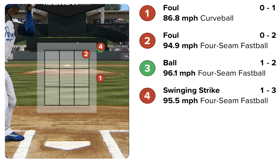 The Royals still had an out to go. Nick Pratto was the eighth batter of the inning. He put up a decent fight, clawing back to a full count after falling behind 0-2 to start his at-bat. A wicked change sent him and the Royals packing.