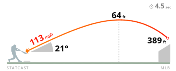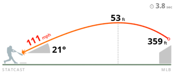 Never thought I would write a sentence like this but the geometry and physics involved in this is a lot of fun. It's fascinating to me that Jensen hit a 94.5 mph four-seamer on Monday at a launch angle of 21 degrees and he hit a 90.5 mph cutter on Tuesday at the same launch angle. The difference was two mph faster on the exit velocity which resulted in a slightly higher apex and 30 more feet of distance. On a colder day. Sometimes I marvel at the data at our fingertips.