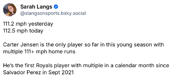 Let’s open by discussing the hit. The Hit. Yes, there was just one hit on the afternoon from the Royals. It was this one, from Carter Jensen: