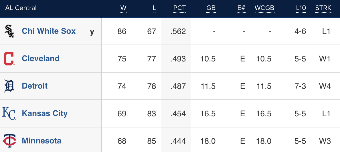 It’s over. The White Sox have officially backed their way into the AL Central title. They earn a “y” in the standings.