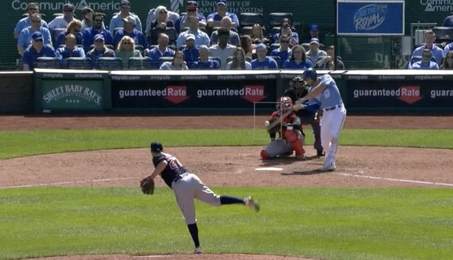 In that first, Myles Straw tapped one back to the box and legged out a single. From there…it wasn’t pretty. Hernández completely lost control of his fastball, walking newly-minted on base machine Steven Kwan on four pitches (three four-seamers) and then falling behind Jose Ramírez 3-0 before losing him on the fifth pitch, another fastball out of the zone. Bases loaded and no outs was not the way the Royals wanted to start the series finale.