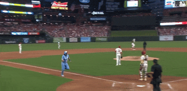 The pitch was a little on the outside half of the plate, but as you can see from the GIF, Caglianone let the pitch travel and laced it the opposite way. This was 112.1 mph off the bat, and with the St. Louis infield shifted over to the right, Caglianone had an excellent chance at reaching when that ball left his bat. Nolan Arenado can still pick it at third, though. That’s a shame.