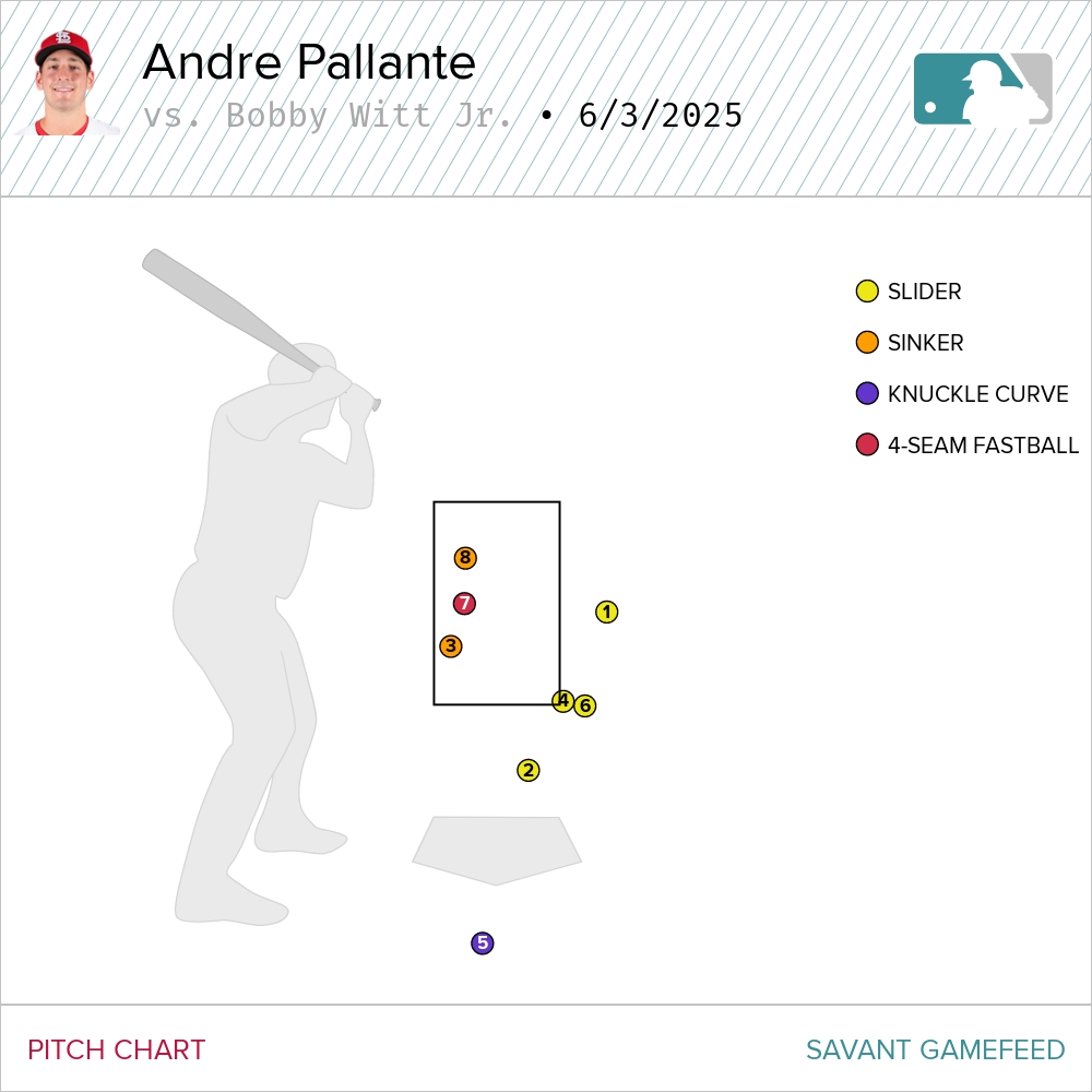 Pallante’s fastballs were coming in at 95-96 mph. The first one was elevated that Caglianone offered, and fouled it off. A bit overanxious, perhaps. Understandable. The next two four-seamers were inside jobs, the second of which was also fouled off.