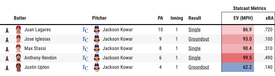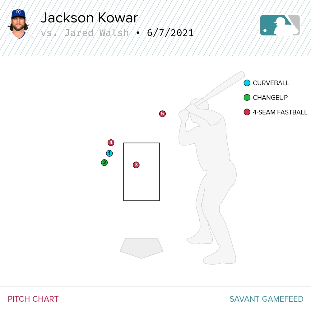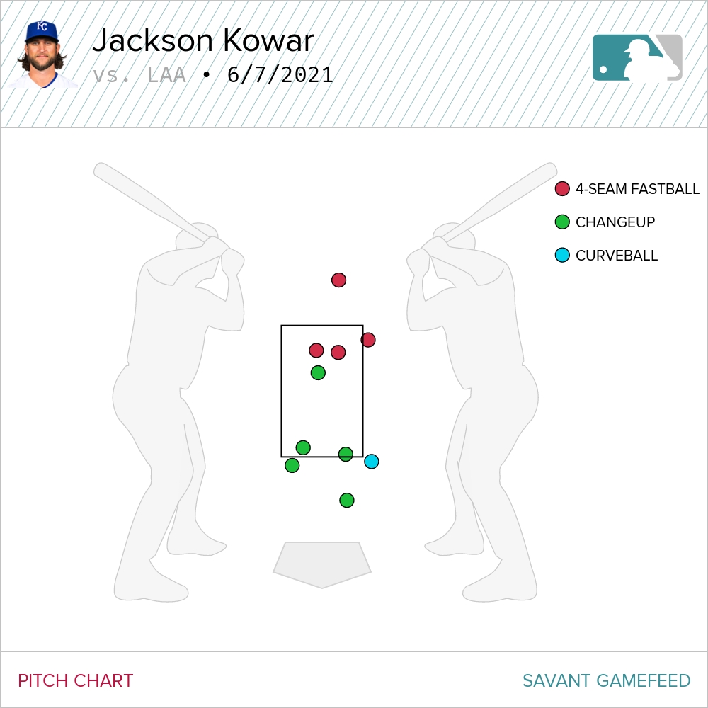 He was ahead in the count on every one of those fouls, save for the 3-0 heater to Ohtani down the middle. The collection of change-ups along with the curve down is something that we will see from Kowar all season. And probably same for the fastballs up when he’s ahead. If he gets a swing and a miss on one of those change-ups, or a ground ball, he escapes the inning and can regroup.