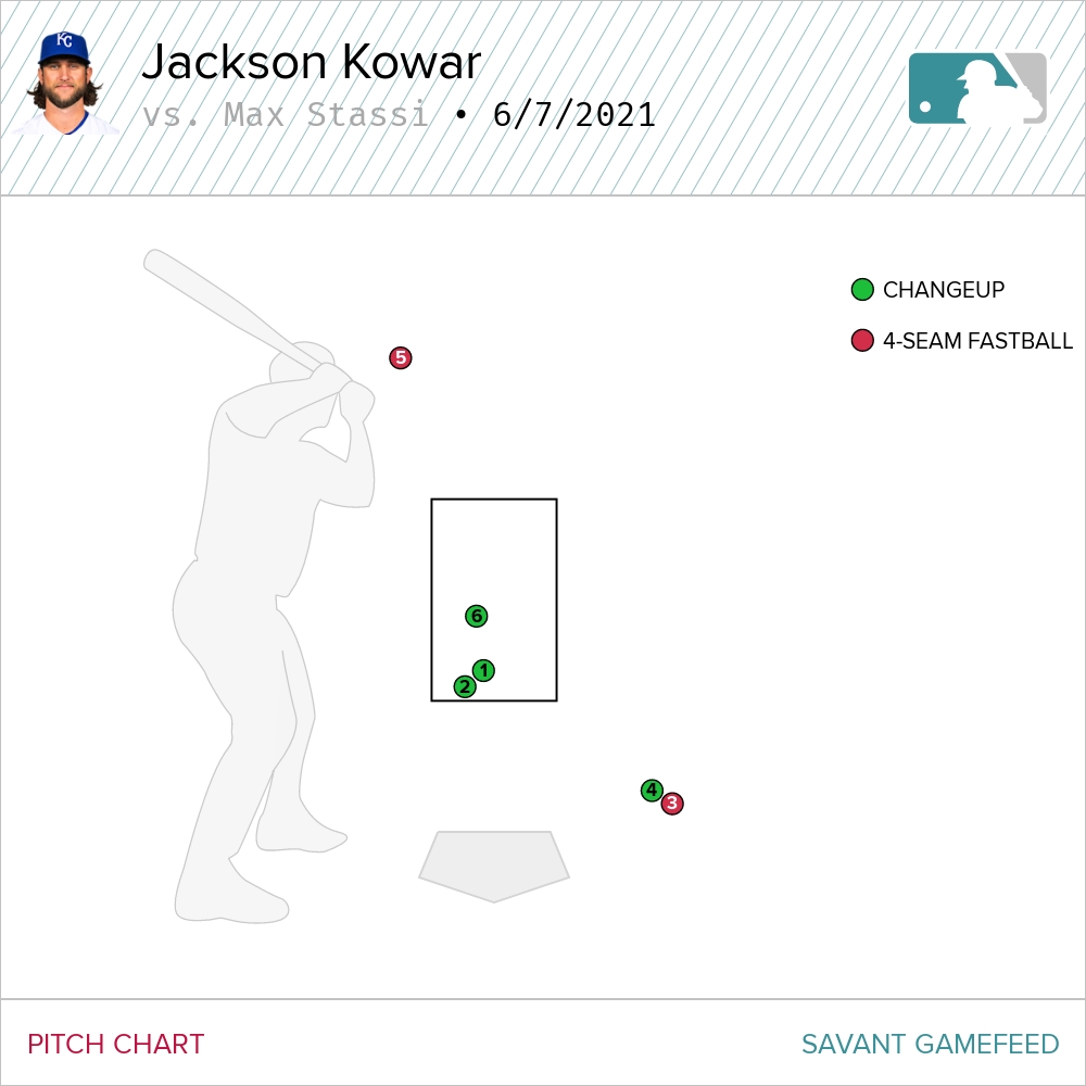 Take a moment to linger on that pitch chart. The first two change-ups were in a perfect spot. If Stassi managed to put either offering into play, Kowar gets a ground ball and with a runner on first, he could’ve gotten a double play and out of the inning.