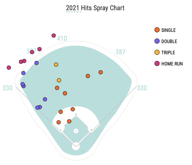 Also, if you want to look for another positive, of the five balls put in play against Kowar, only one was truly hard-hit. And only two had an xBA greater than .310.
