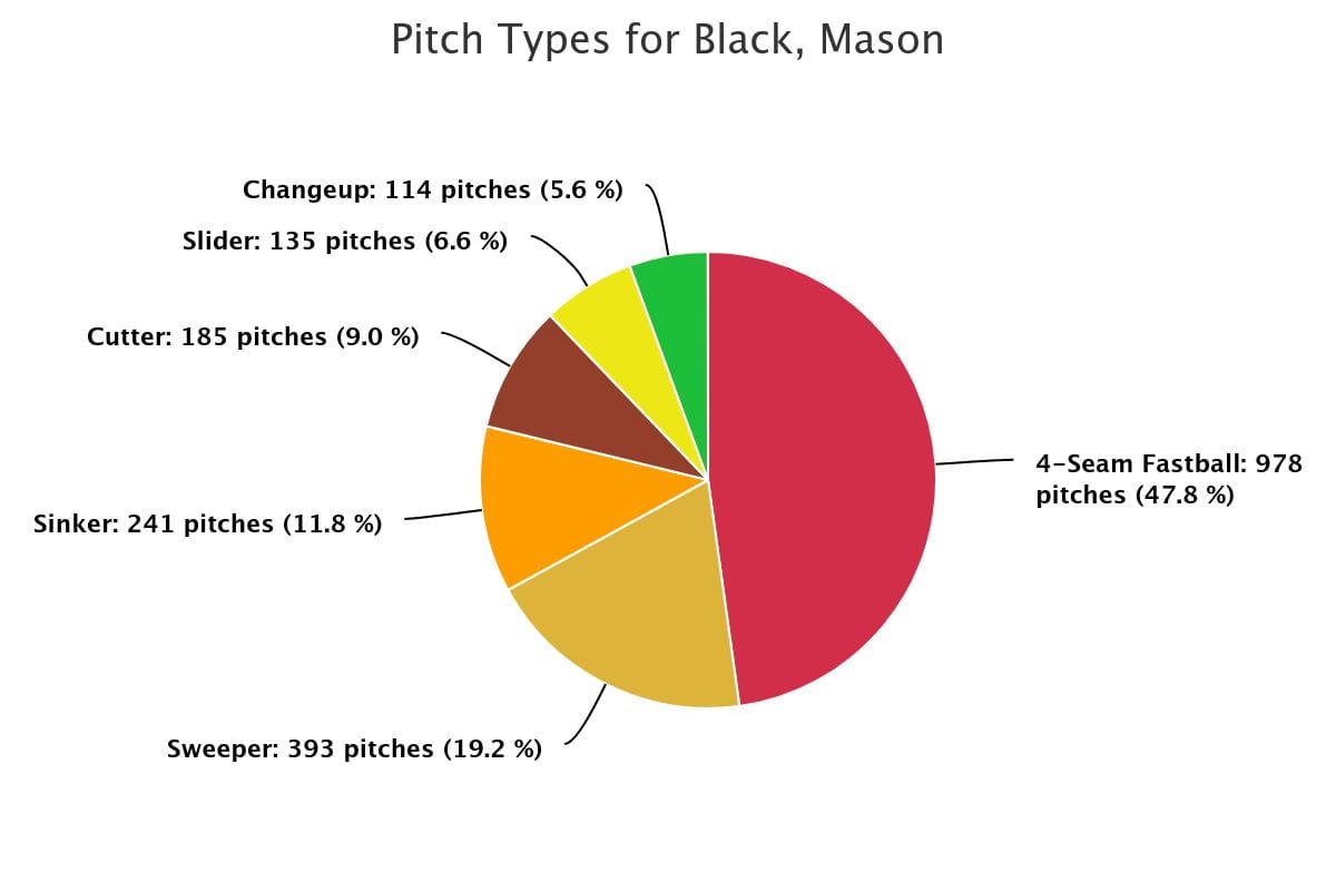 Once upon a time, the sinker was Black's primary fastball. That's changed since he arrived at the Triple-A level. He would mix in a cutter from time to time, but his main secondary offering was the sweeper.
