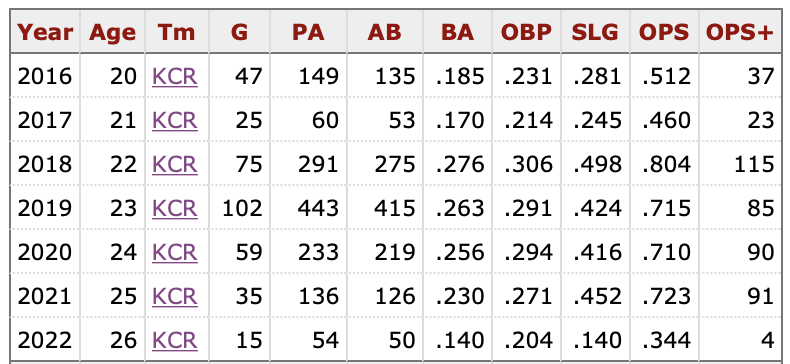 It’s just another frustrating turn in Mondesi’s career. So many injuries and so much unrealized potential. He was off to a dreadful start at the plate in 2022, hitting .140/.204/.140 in 54 plate appearances, good for an OPS+ of 4. That’s 96 percent worse than the league average. Woof.