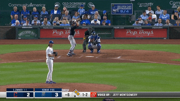 Take a moment to scroll up and revisit the pitch chart of the changeups to left-handed batters. Kowar was working down all night. Perez set his target a little lower, looking for another one down, but when you’ve been on all night, you can afford to miss a little location when you’re ahead in the count. In this case Bradley Zimmer is helpless. He, and his teammates, haven’t seen 88 mph in that location all night.