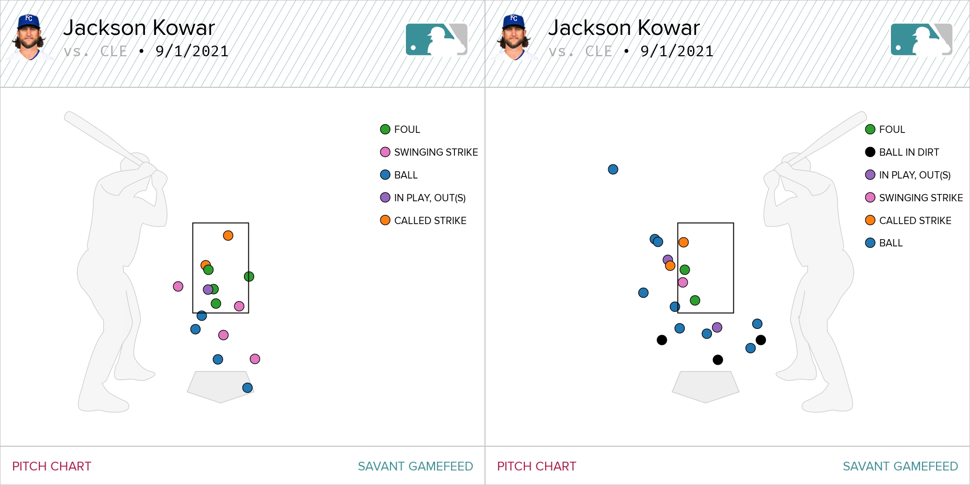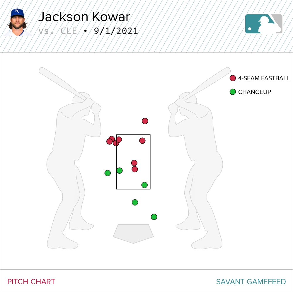 Kowar had his command working on Wednesday, something that was absolutely missing from each of his first three big league outings. When he’s locating that fastball and pairing it against the changeup…mercy. Check out the location of his swinging strikes.