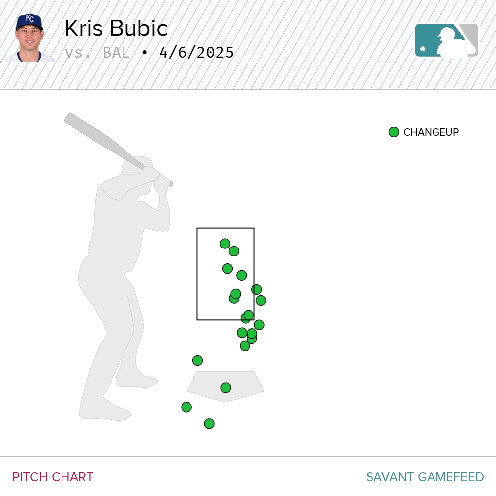 An added benefit for Bubic on Sunday was the way he commanded that pitch. He was consistently locating his change away from the Orioles right-handed bats.