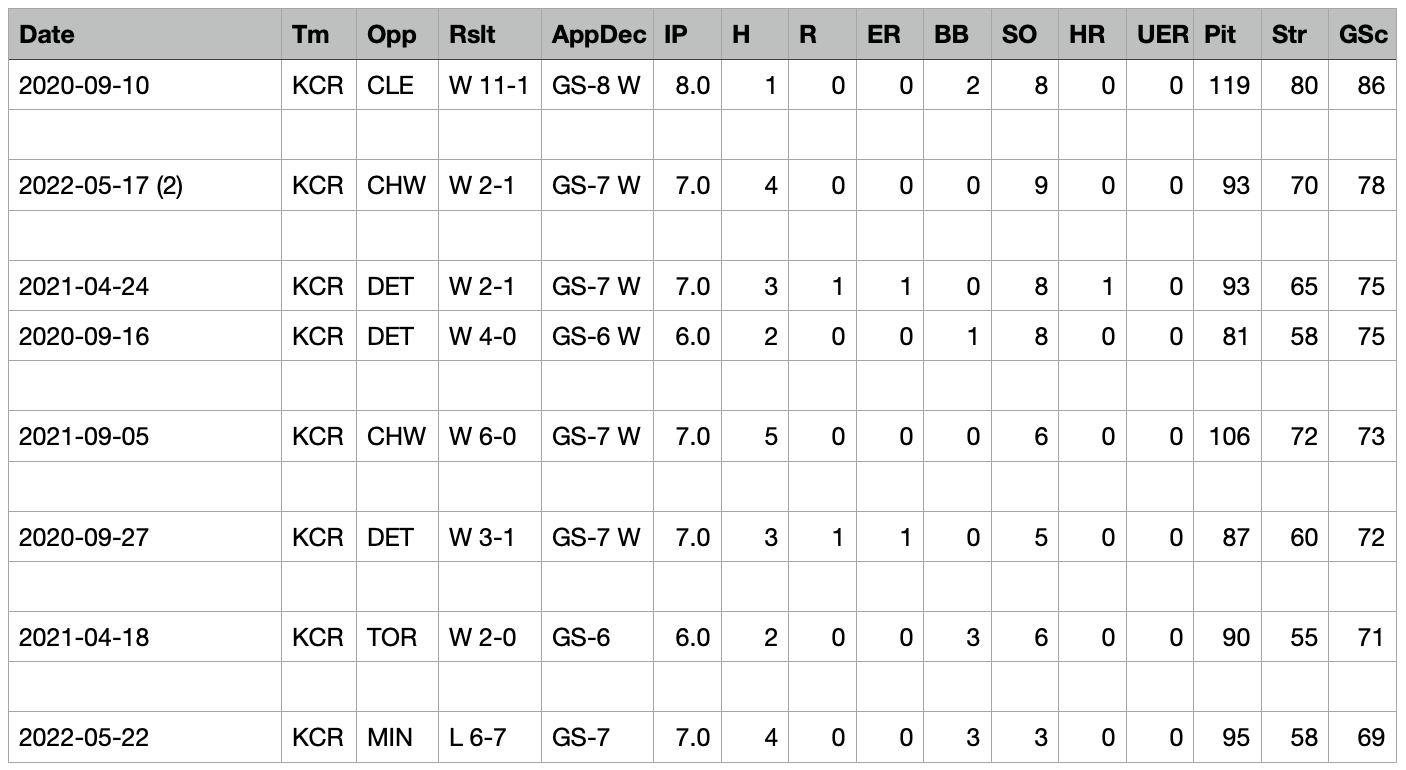 You’ll also note back-to-back starts from April 2021…Which come off a string of starts from September 2020. That’s why I’m a bit skeptical. He’s had a stretch like this before. I just need to see more. Again…I don’t want this to read like I’m not enthusiastic about this. It sure feels like he’s become a different pitcher. There is promise in both process and results. This is a very positive development.