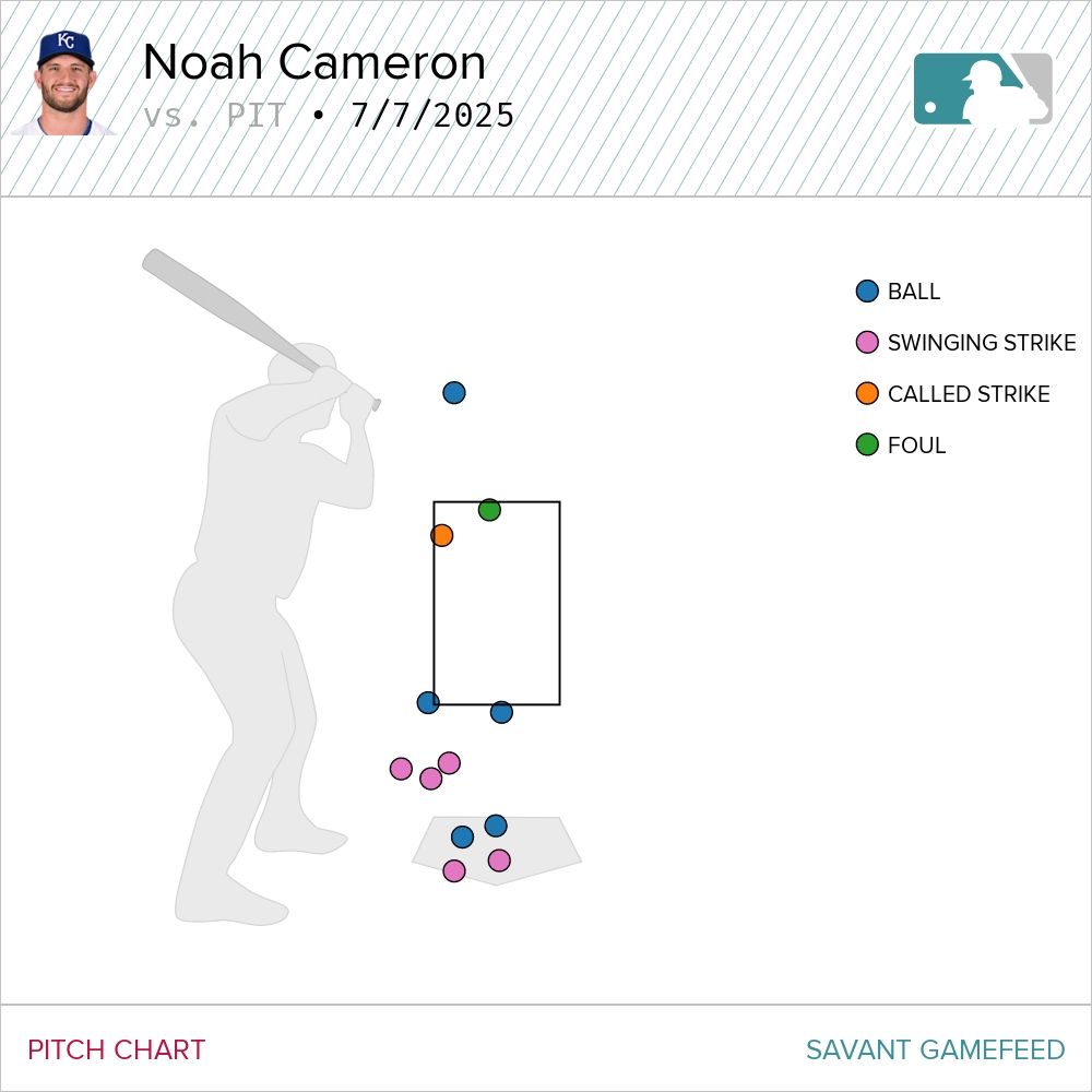 It was against this backdrop that the Pirates visited Kauffman Stadium on Monday for the first of three games this week before the All-Star Break. Aside from one pitch to Tommy Pham, these were the version of the Pirates who stumbled in Seattle. The Royals homered early. They homered often. They recorded an always-welcome victory at The K on the back of a strong outing from Noah Cameron and the production of the top of their batting order, rolling to a 9-3 win.