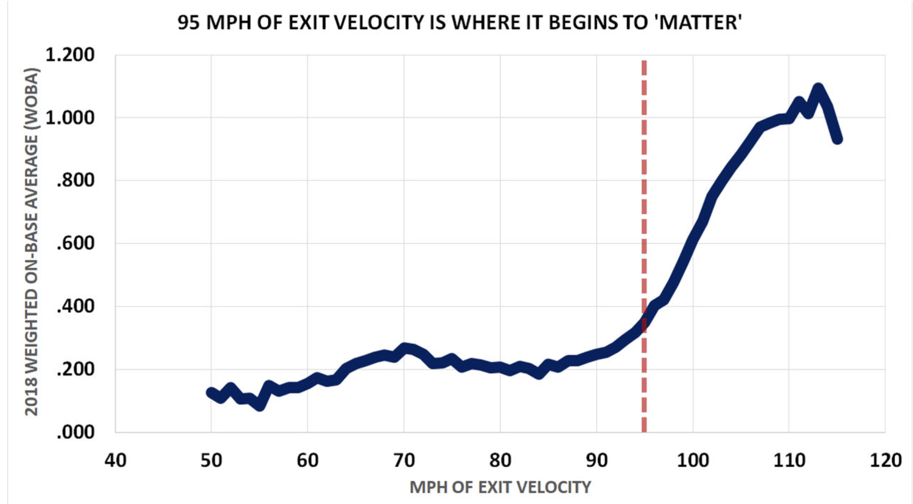 Why does that matter that Dozier has increased his Hard Hit rate? Historically, balls that are hit over 95 mph go for base hits more than 50 percent of the time.