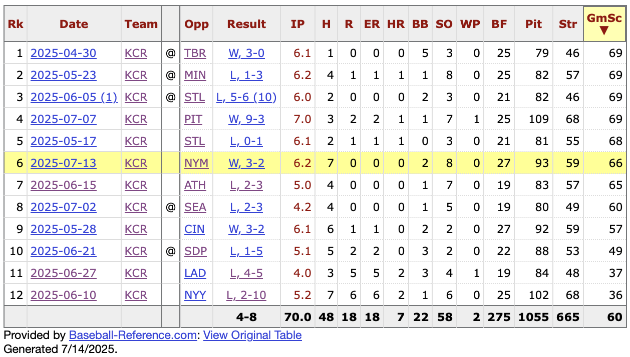 Time to check in on Cameron’s Game Score table. Sunday was the eighth time in 13 starts he finished with a Game Score at 60 or better.