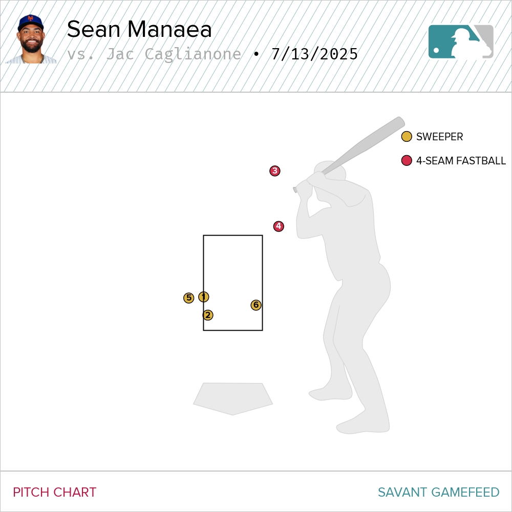 Pitching for the Mets was Sean Manaea, making his 2025 debut after missing the first three-plus months with an oblique strain and a loose body in his elbow. The lefty Manaea altered his delivery last season to become an extremely effective sidearmer. That’s a difficult matchup for any left-handed bat. It would seem an impossible matchup at this point for Caglianone.