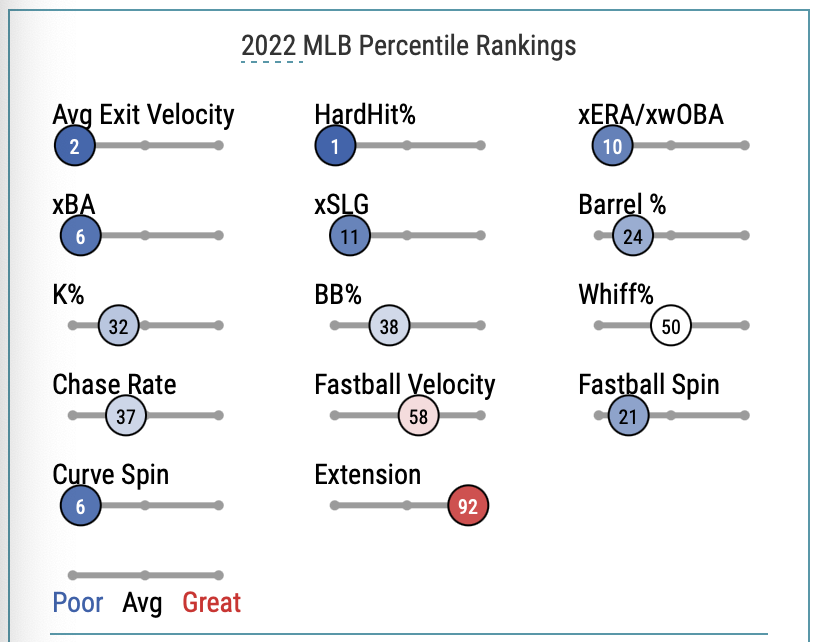 He’s always been described as the pitcher on the staff with the most upside, but Lynch’s StatCast percentiles are ugly. The fastball is flat and too often center-cut. The slider has lacked bite. The inability to put away hitters after jumping ahead is confounding. Brian Sweeney and staff have their work cut out for them. Lynch will serve as the acid test.