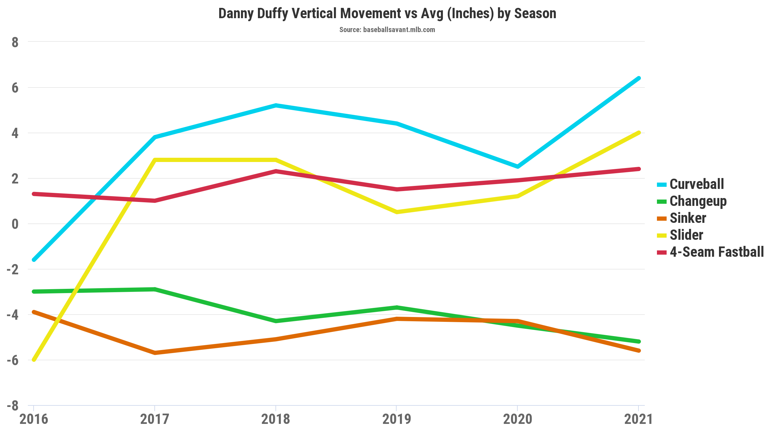 All of Duffy’s pitches this year have increased spin.
