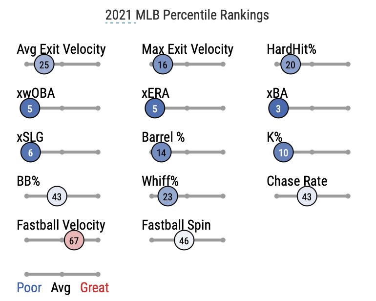 This is where he currently stands on the Statcast 2021 MLB percentile rankings.