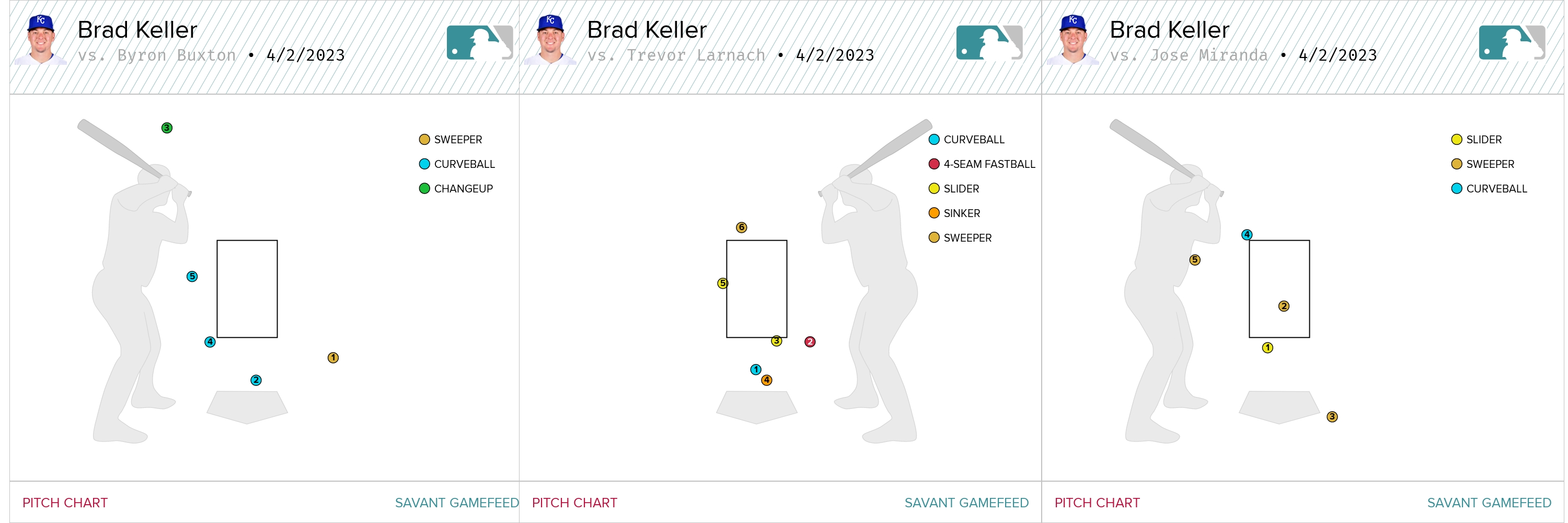 To get an idea of how Keller used the sweeper, the called strikes were mostly on the first pitch of a PA or when Keller was behind in the count. In other words, Keller is comfortable enough with the pitch that he has confidence he can spin it into the zone.