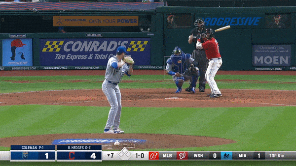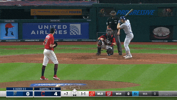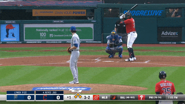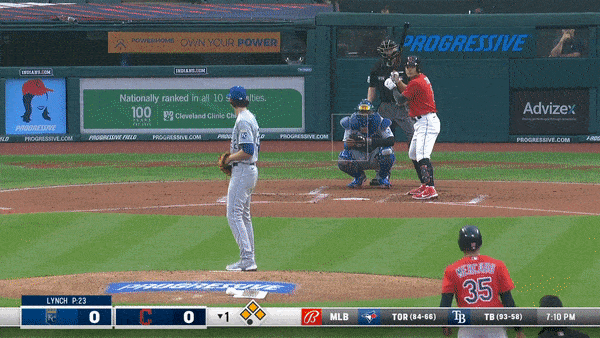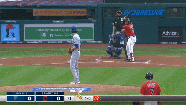 It was a damp evening in Cleveland at the start of the game. It looked like Andrew Benintendi broke in on a sinking line drive, slipped on the wet turf, was in too far because of that, and couldn’t recover to make the catch. Just some brutal luck for Lynch, Benintendi and for the Royals.