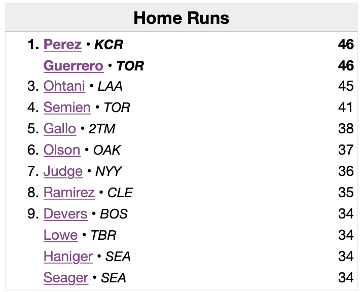 In the old baseball days, this would probably heavily impact the outcome of the AL MVP vote. These days, not so much. But I would proffer that the top four finishers in the upcoming balloting are the four dudes who have blasted over 40 dingers this year.