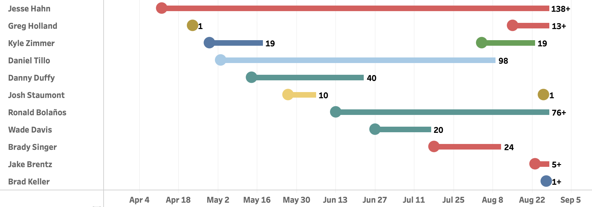 This is just another blow to a pitching staff seemingly rocked by injuries of late. Using the Baseball Prospectus Injury Ledger, we can see the Royals have had a difficult time keeping their pitchers healthy this year. With Jake Brentz, Greg Holland and Brad Keller all going on the IL in the last couple of weeks, the numbers have sharply increased of late. The data presented below is days on the IL through August 27.
