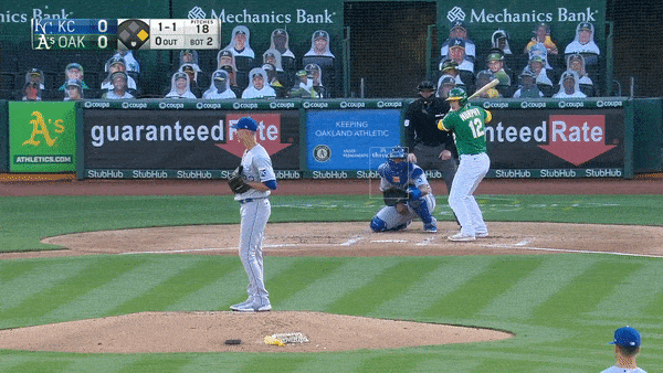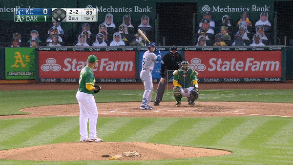 I mean, that’s just unfair. Filthy even. Keep a little focus on that gif. Look where Salvador Perez sets his glove. Look how Lowrie is out in front and has to reach for a pitch he’s never, ever going to make contact with. It’s a perfect pitch in a perfect location on a perfect count. Yes, it was perfection.