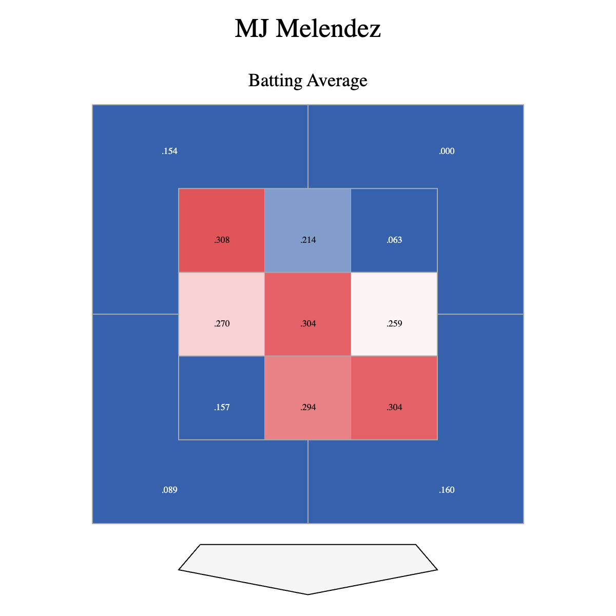 It’s difficult to read the text in those boxes, but Melendez hit just .089 on the 40 balls he put in play when swinging at pitches low and away. The number wasn’t much better on pitches in the lower and away part of the strike zone with Melendez hitting a paltry .157 on those balls he put in play. Which, by the way, he was doing at a rate of 55 percent of when he swung the bat.