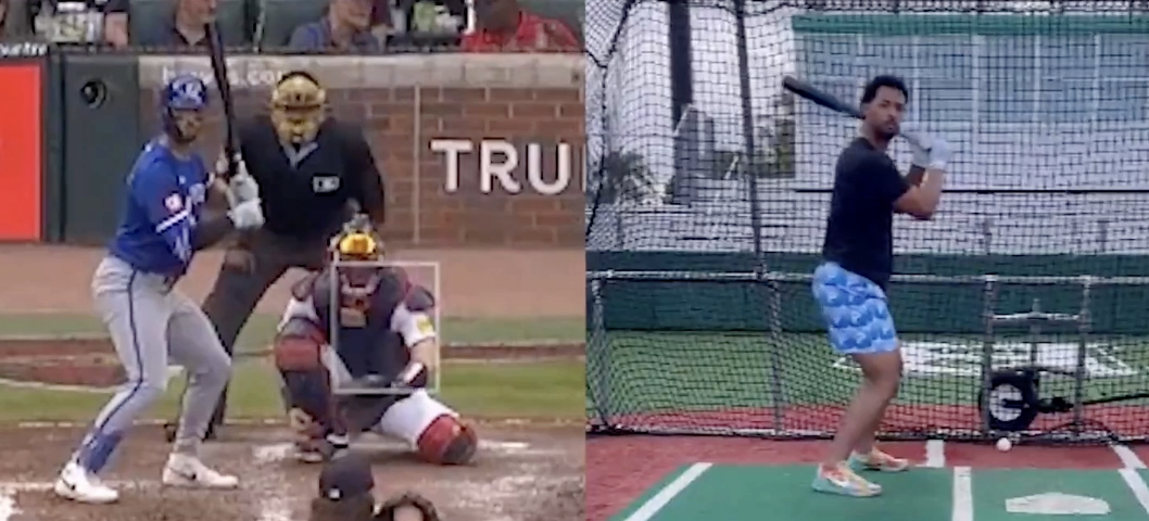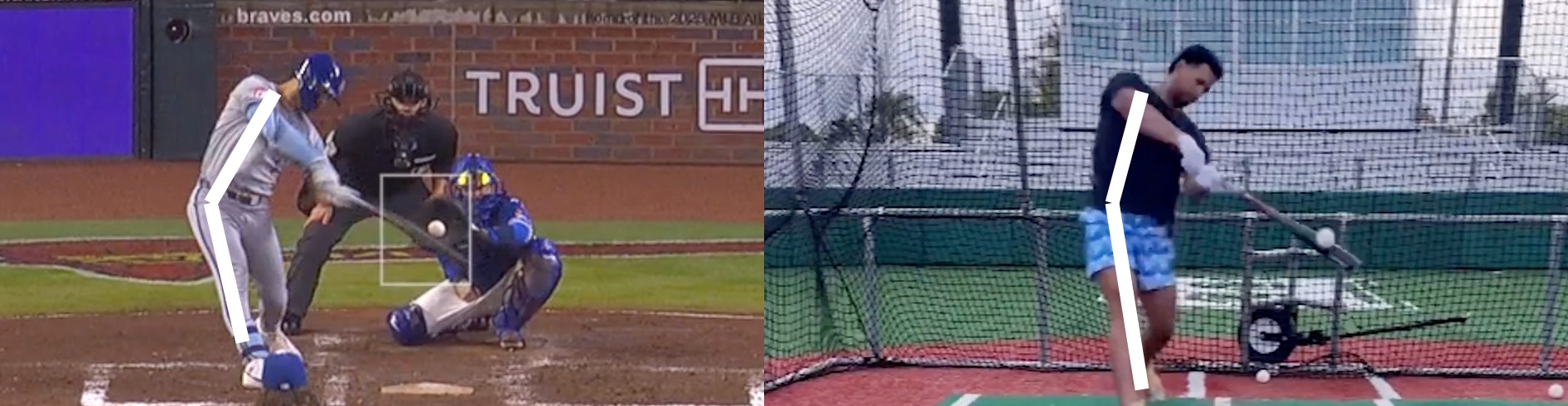 As for the swing itself, I’m not a huge fan of using the pitch that was used in the side-by-side comparison. The pitch in the game on the left was on the season’s final day in Atlanta. It was an 85 mph curve from Grant Holmes that didn’t really feature a ton of break and ended up pretty much in the middle of the zone. It was a 1-2 pitch.