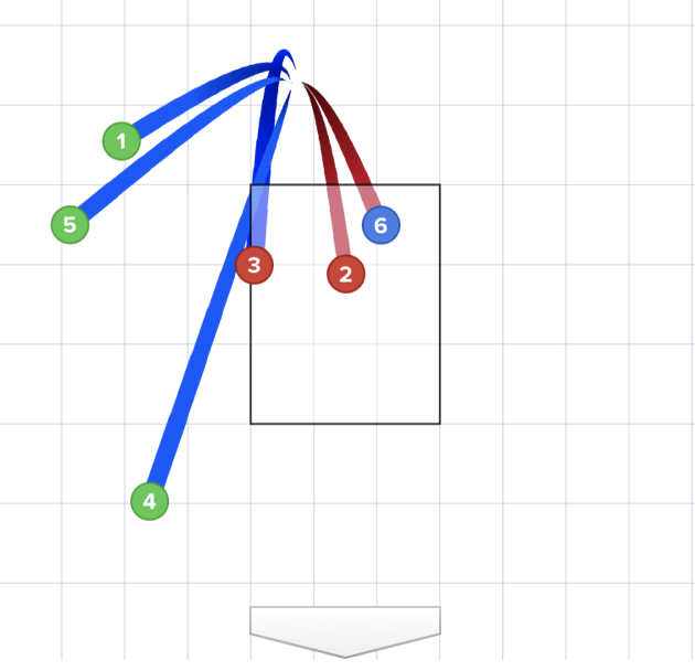 The next offering was a curve that caught the outside edge for a called strike. Ahead 1-2, Heasley and the Royals are defying what should be conventional strategy and playing with house money. Although now, ahead in the count, the strategy should shift—with caution. Continue to work outside with the off-speed, but stay the hell out of the nitro zone. Maybe you can get Ramírez to expand with two strikes. But Heasley pushed too far off the dish with back-to-back changeups. The count went full.