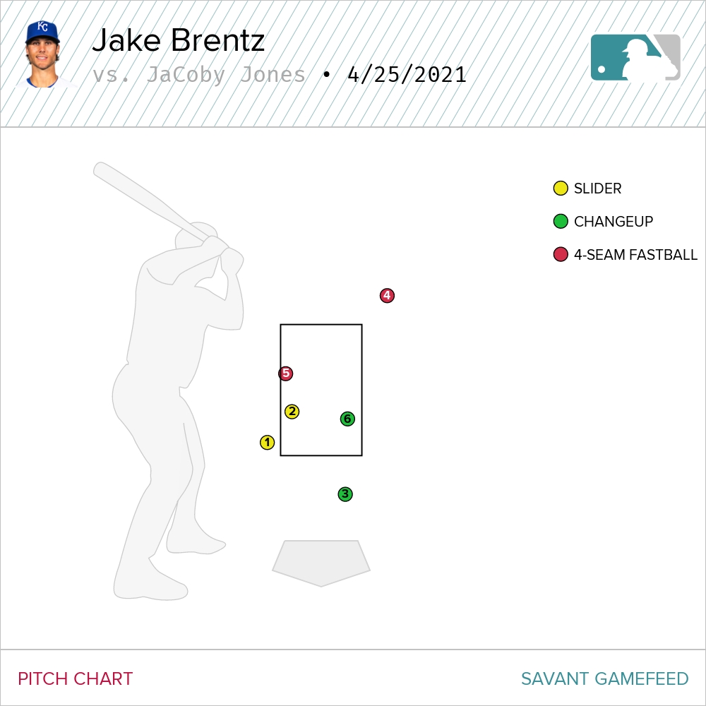Poor JaCoby Jones didn’t stand a chance on Sunday, despite having the platoon advantage. Brentz started him off with a nasty slider that starts over the plate and cuts down and in to a right-handed batter: