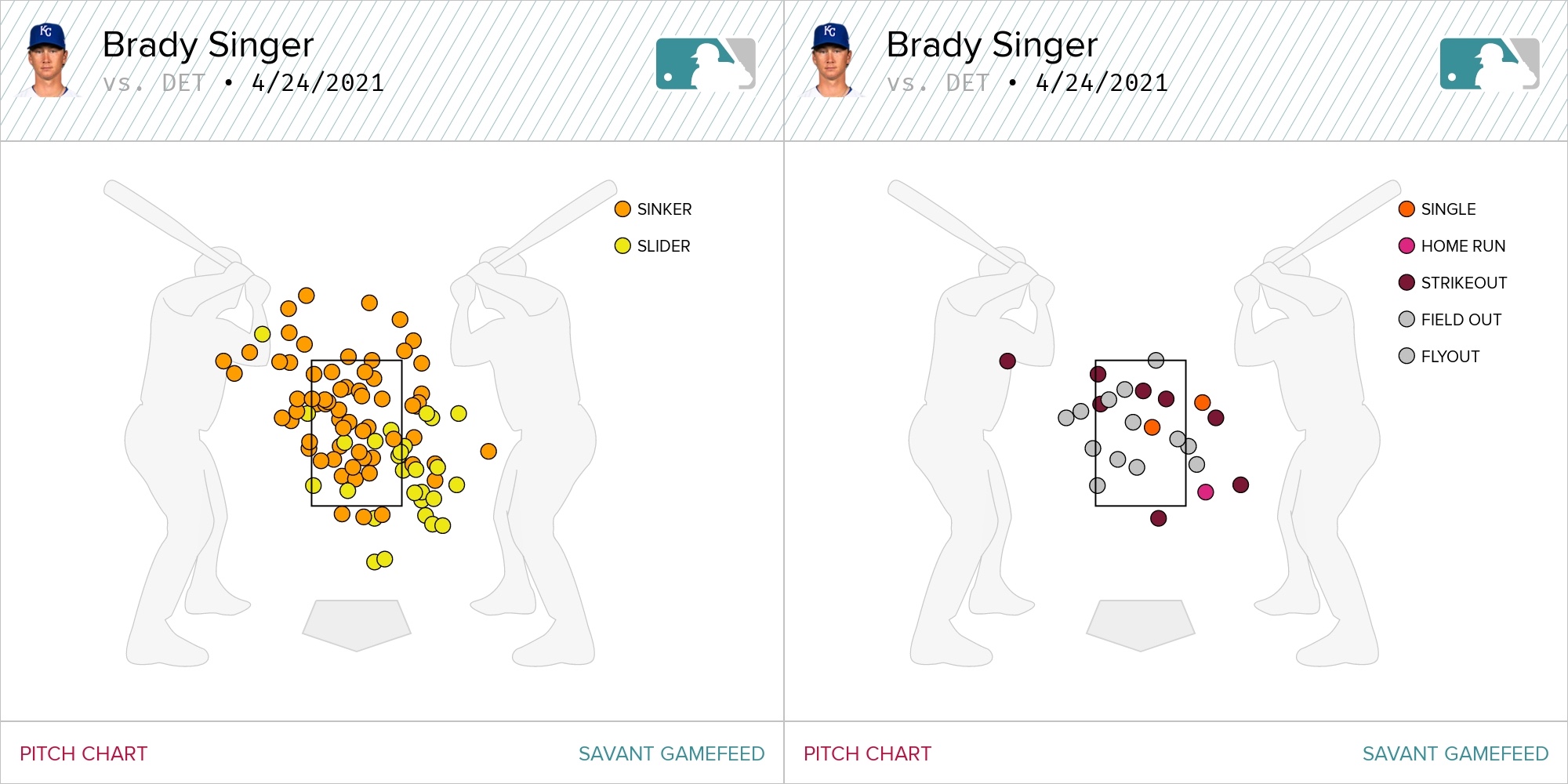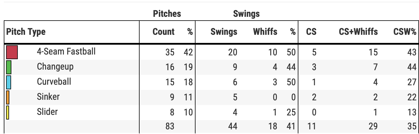 In Saturday’s game, Singer worked exclusively sinker/slider. He had a 34 percent CSW% (called strikes plus whiffs), which is a very strong rate.