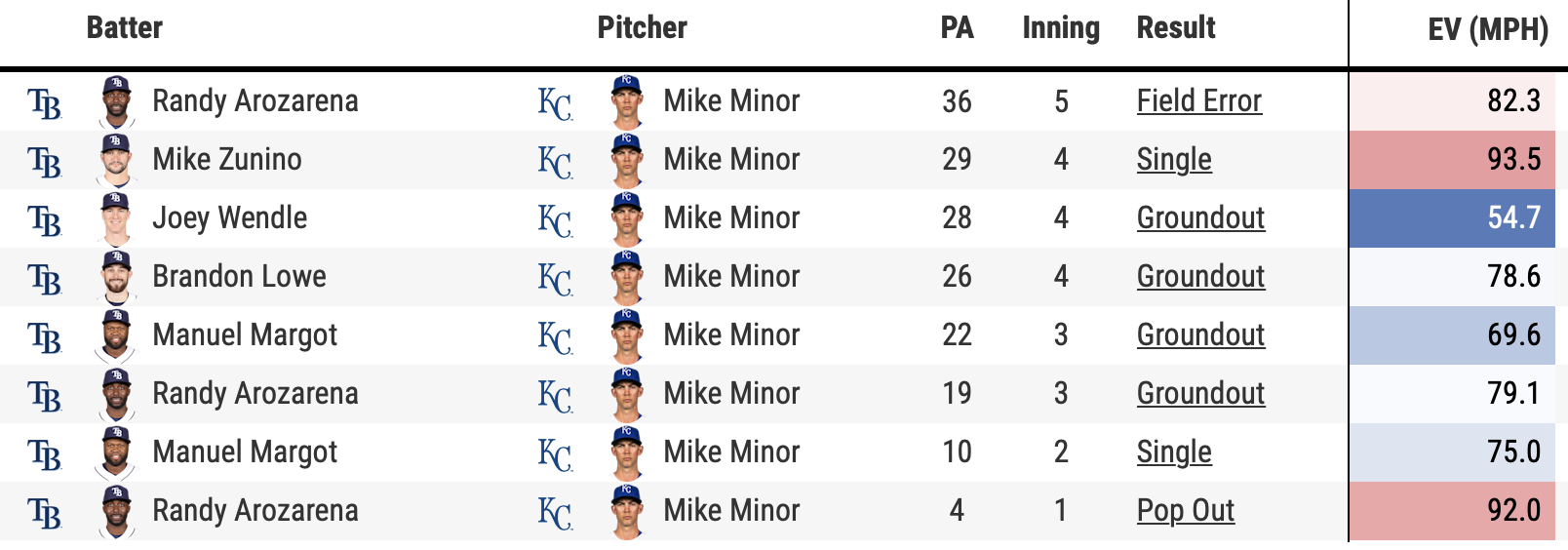 Perhaps most astonishingly, of the eight balls the Rays put in play against Minor, he didn’t allow a single hard hit all night.