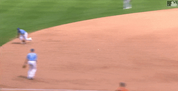 This was, hands down, one of the most impressive plays I’ve seen any defender make in 2021. Everything about this play is perfect. The quick-twitch reaction to get to the ball in the first place. The knowledge that he has a certain amount of time to get the ball to first given the runner. The ability to get to his feet quickly while transferring the ball from his glove to his hand. And finally, bouncing the ball not once but twice to first baseman Carlos Santana and giving him a perfect between hop throw to catch.