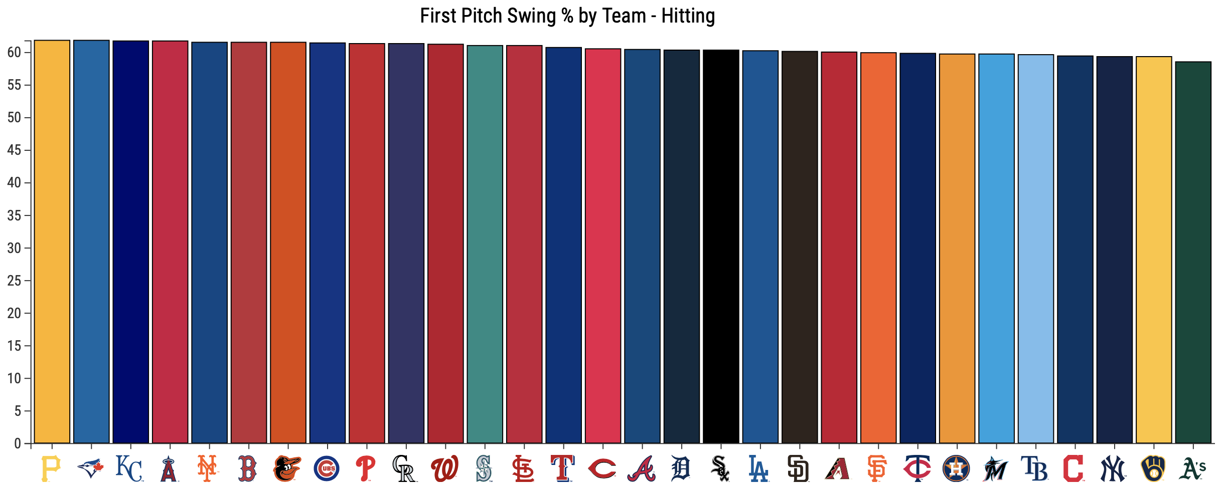 While it may sound notable that the Royals are close to the top of the league when it comes to offering at the first pitch, there’s not a ton of space between first and worst.
