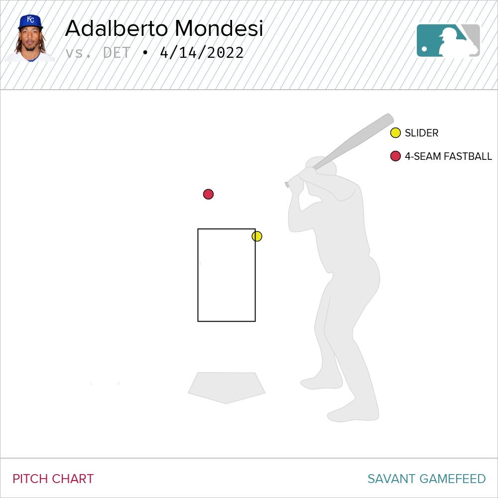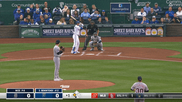 In the second, the Royals had a little something cooking with the bottom half of their order after Carlos Santana walked and Hunter Dozier lined a single. With runners on first and second, Mondesi squared to bunt, but got a pitch up and in, resulting in an imperfect bunt that allowed Mize to go to second for a force out.