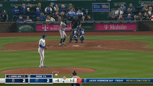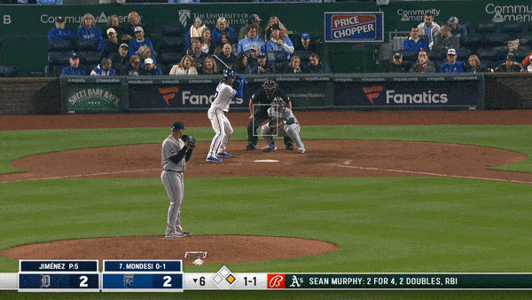 It wasn’t hit all that hard—79.7 mph off the bat—but with the Jeimer Candelario playing even with the bag at third, the reaction time is reduced. Once Candelario didn’t field the ball cleanly, the Royals had their run.