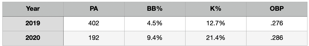 He was able to double his walk rate from 2019 (that’s great!), but it came at the expense of his strikeout rate jumping to above 20 percent (that’s awful!). That’s a hitter who is lost and overmatched at the plate.
