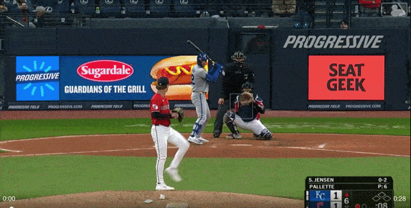 The Royals chipped back a half inning later with a walk to Vinnie Pasquantino and a two-out wild pitch strike three to Carter Jensen that kicked all the way to the backstop. That allowed Jensen to reach and Pasquantino to move to second. The Pasquatch came around to score on a Jonathan India liner to right to tie the game at one.