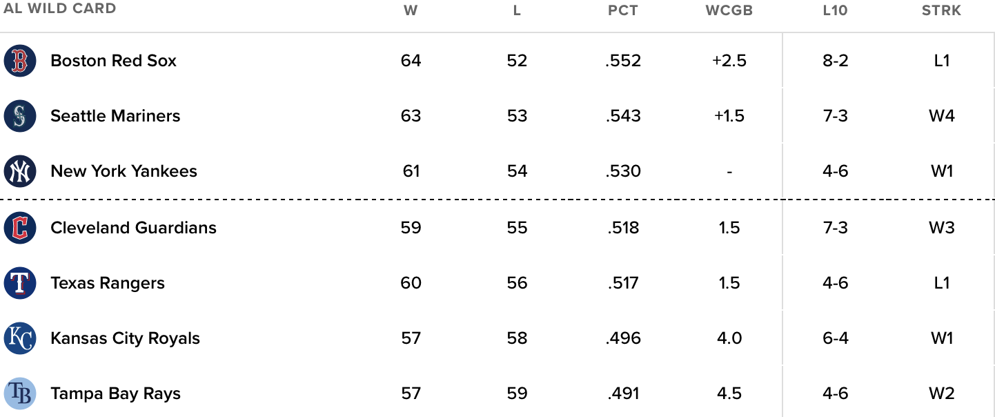 Here is how the Wild Card standings look as of Friday.